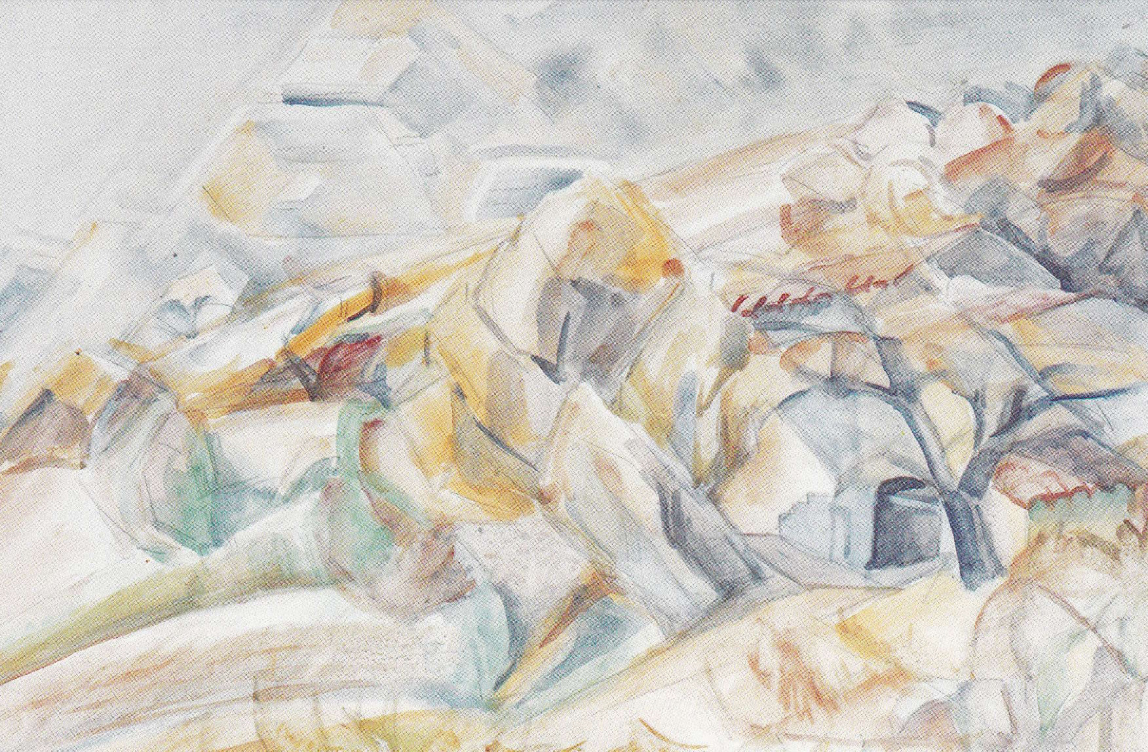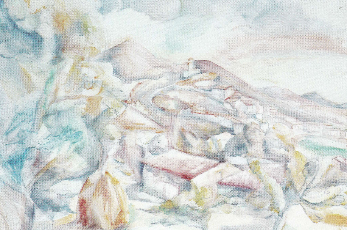 Juliette DESHAYES – Mirmande, les deux pins maritimes (the two pines) – Watercolour 1958