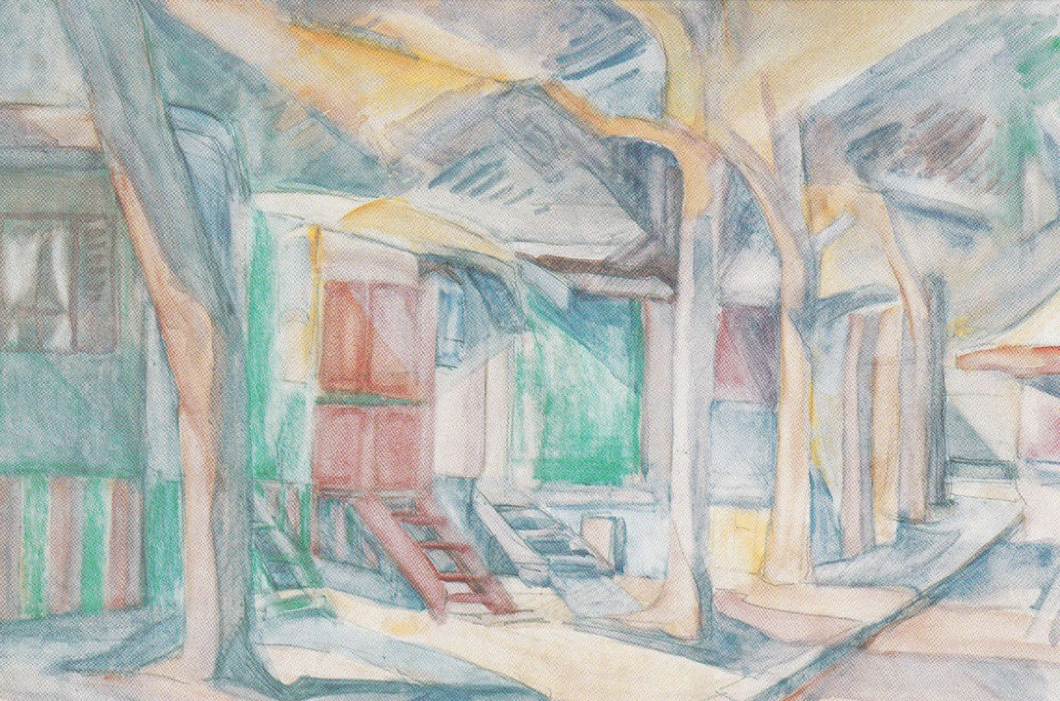 Mirmande, André Lhote et Simone devant la ferma aux 90 appartments aquarelle 1957