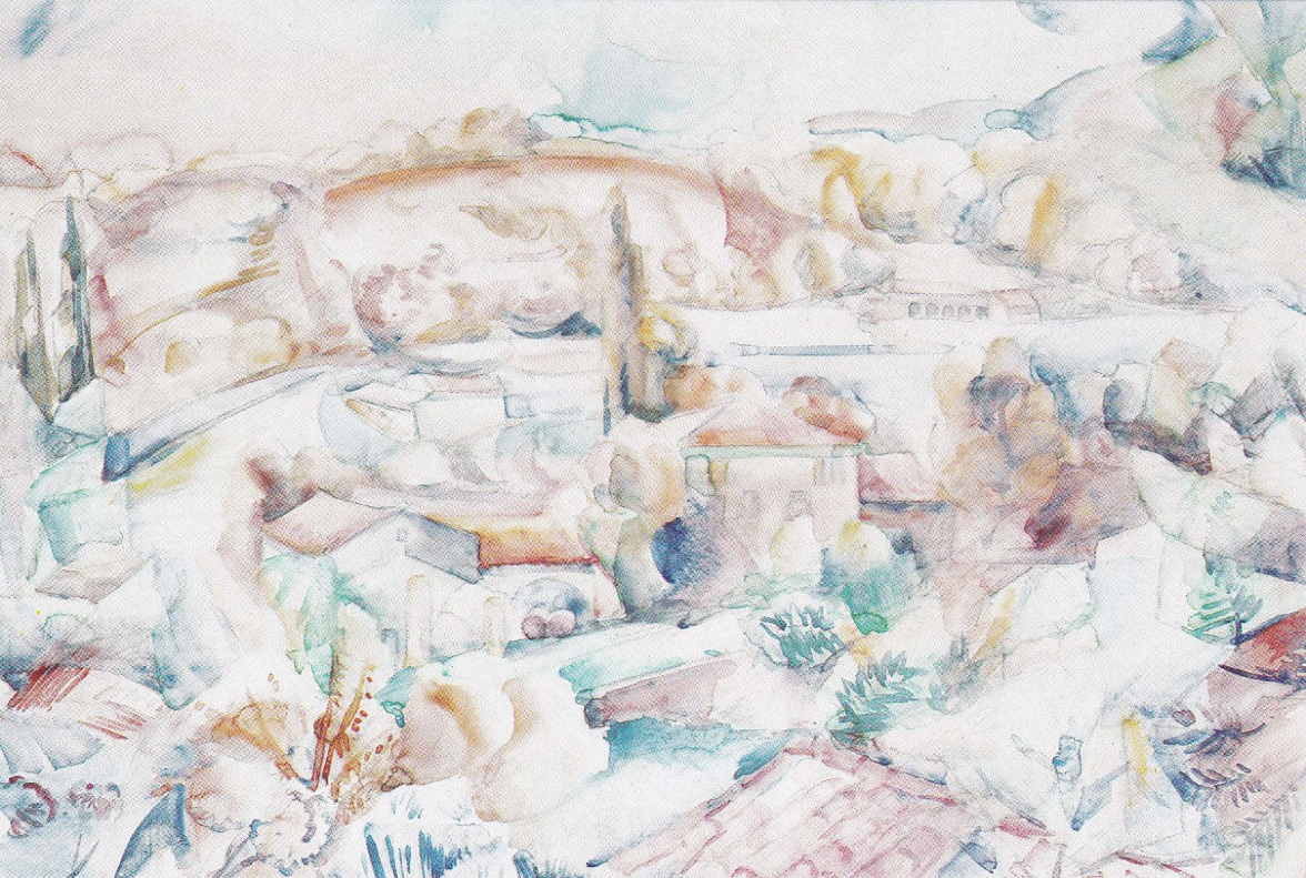 Juliette DESHAYES – Ferme à Mirmande (farm at Mirmande) – Watercolour 1952