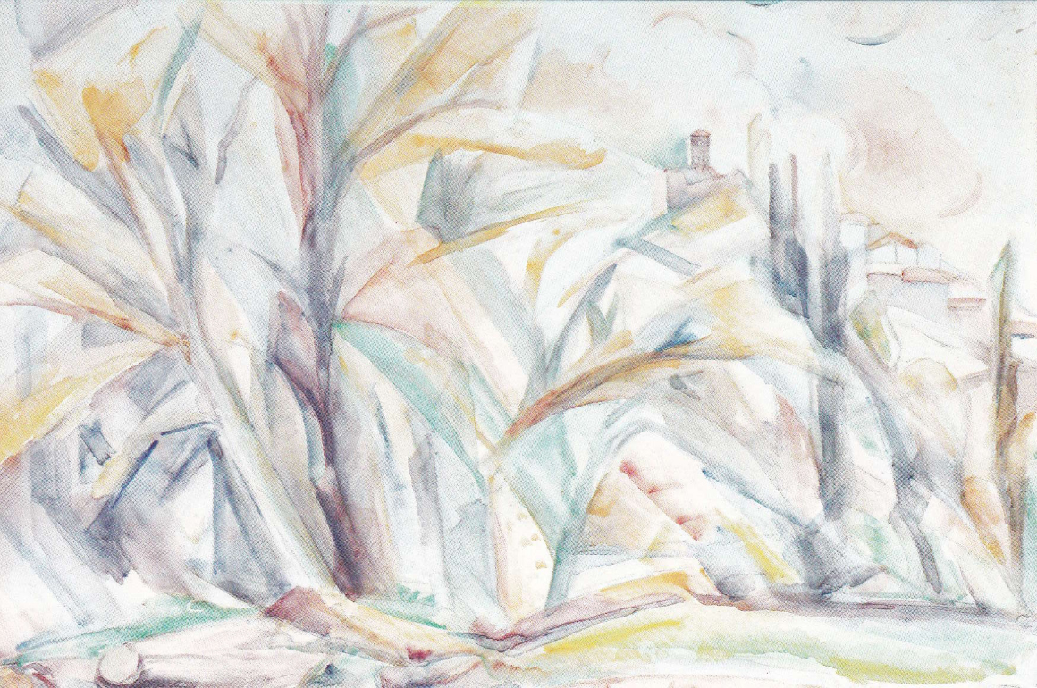 Mirmande,-les-deux-pins-maritimes-aquarelle-1958