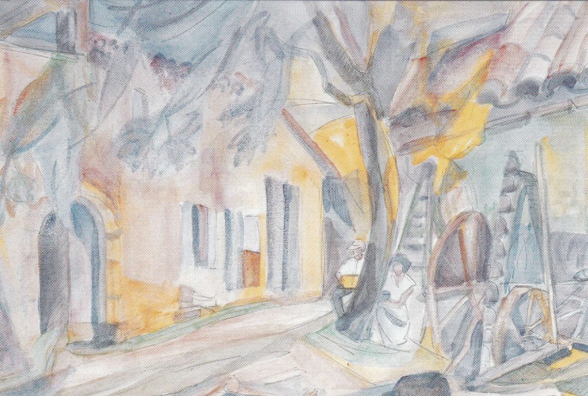 Mirmande,-la-ferme-Moulin-à-la-meule-aquarelle-1945